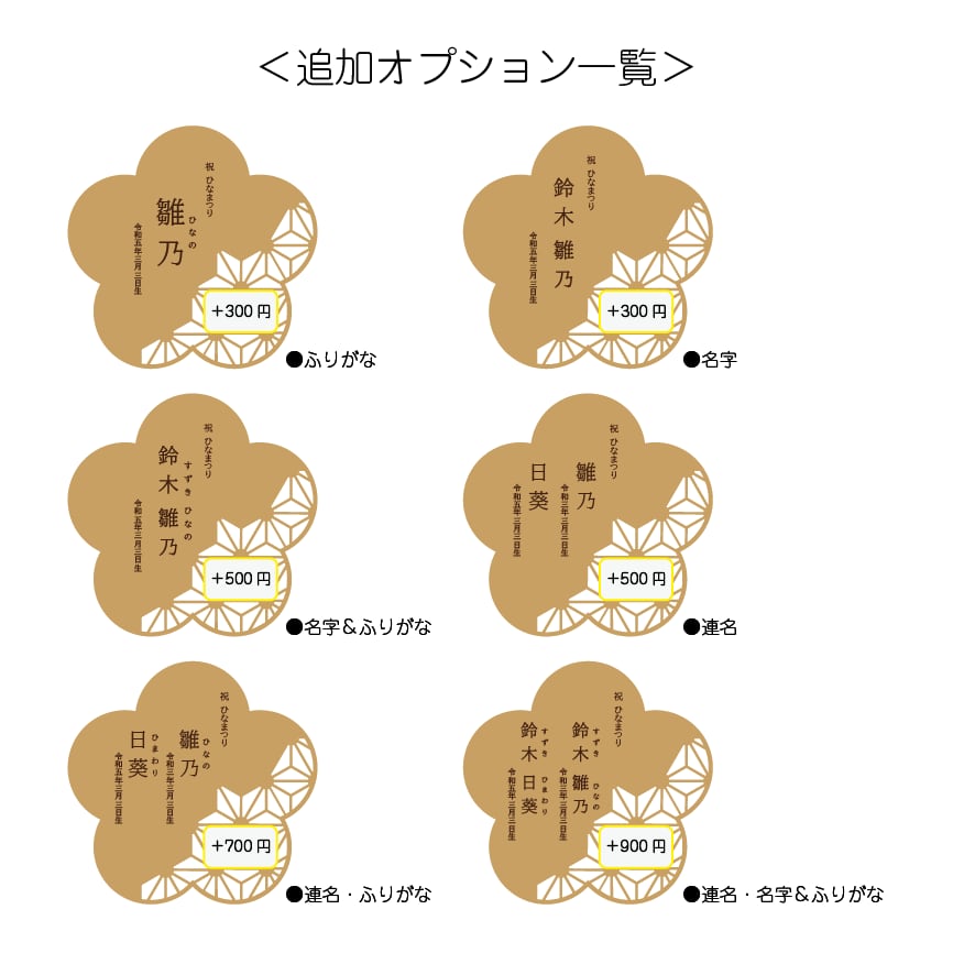 ※名字やふりがな、連名など追加される場合は+300円~900円となります。